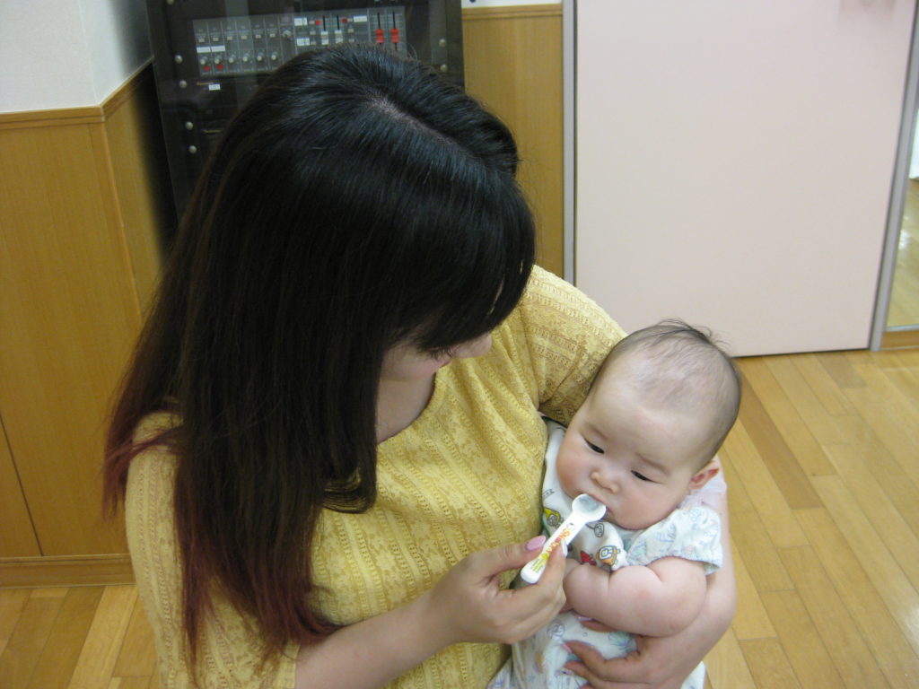 当院でお生まれになった5ヶ月の赤ちゃんを対象に毎月離乳食講座を開催しております。離乳食作りの実演も交え、実際に一緒に参加されたお子様に試食していただけるので解かり易いと好評です。