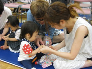 - ペットボトルとビーズで簡単なガラガラを手作りして遊びました。 上手にできたかな?